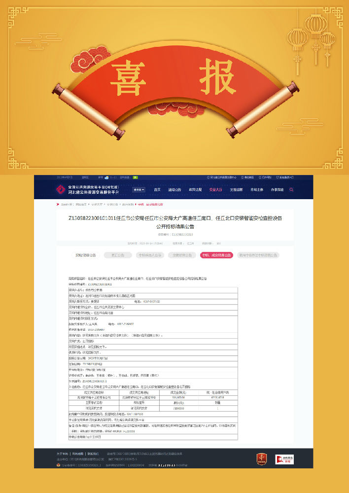 賀:任丘大廣高速任丘南口、任丘北口安裝智能安檢查控設(shè)備采購(gòu)項(xiàng)目中標(biāo)!